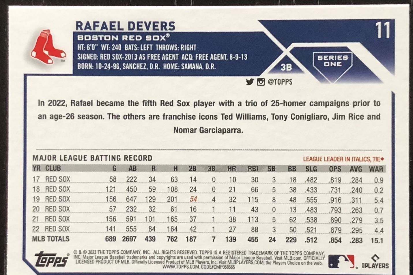 Lot 279 2023 TOPPS RAFAEL DEVERS