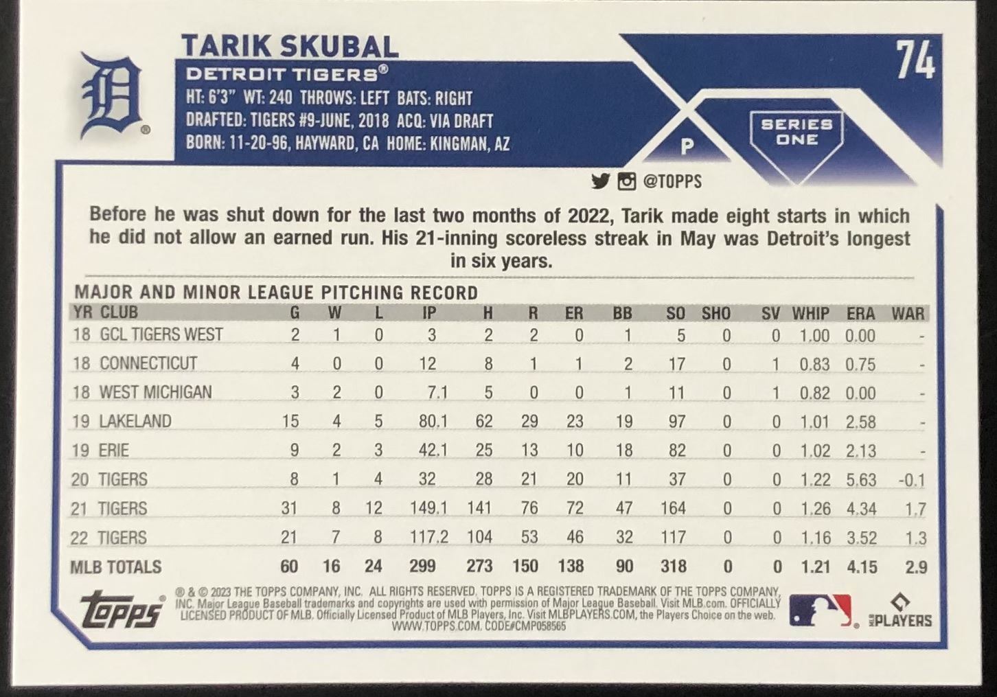 Lot 280 2023 TOPPS TARIK SKUBAL