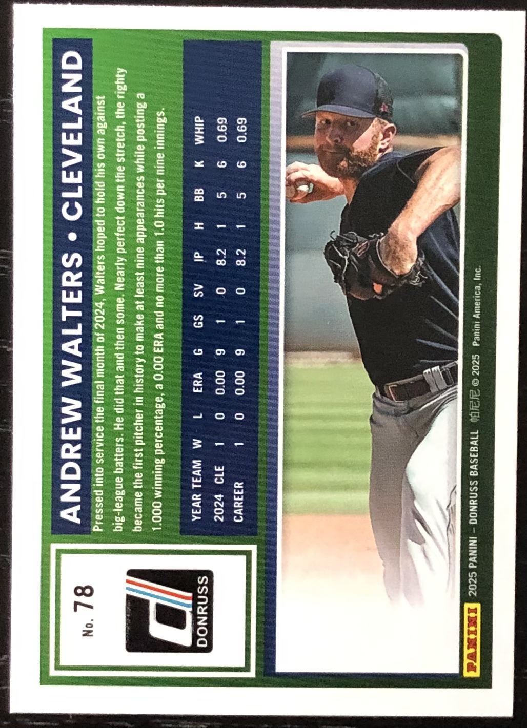 Lot 285 2025 DONRUSS ANDREW WALTERS ROOKIE CARD