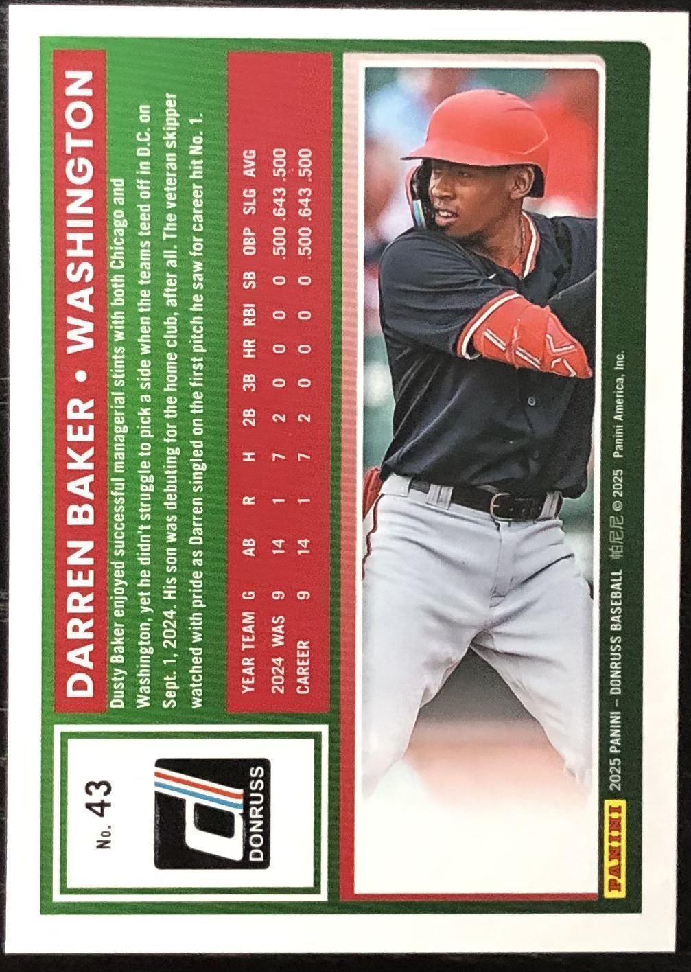 Lot 293 2025 DONRUSS DARREN BAKER ROOKIE CARD