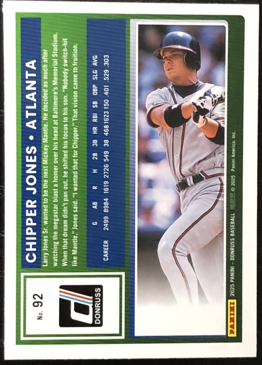 Lot 295 2025 DONRUSS CHIPPER JONES (HOF)