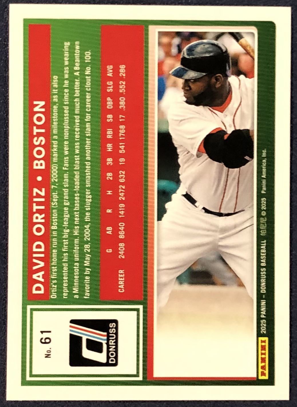 Lot 302 2025 DONRUSS DAVID ORTIZ (HOF)