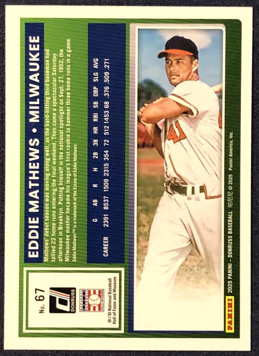 Lot 305 2025 DONRUSS EDDIE MATHEWS (HOF)