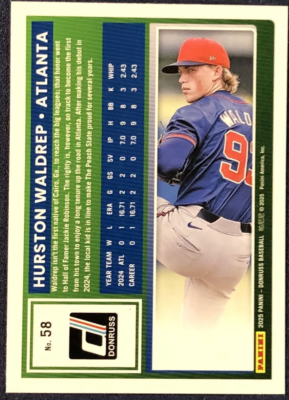 Lot 308 2025 DONRUSS HURSTON WALDREP ROOKIE CARD
