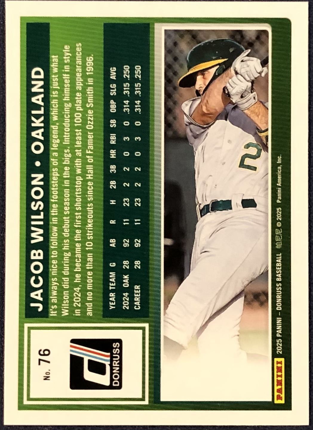 Lot 318 2025 DONRUSS JACOB WILSON ROOKIE CARD