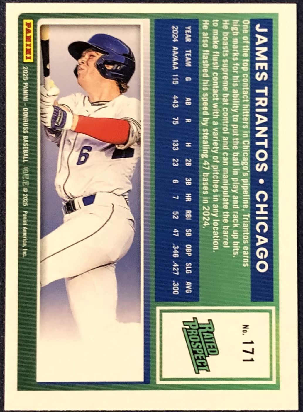 Lot 320 2025 DONRUSS JAMES TRIANTOS ROOKIE CARD