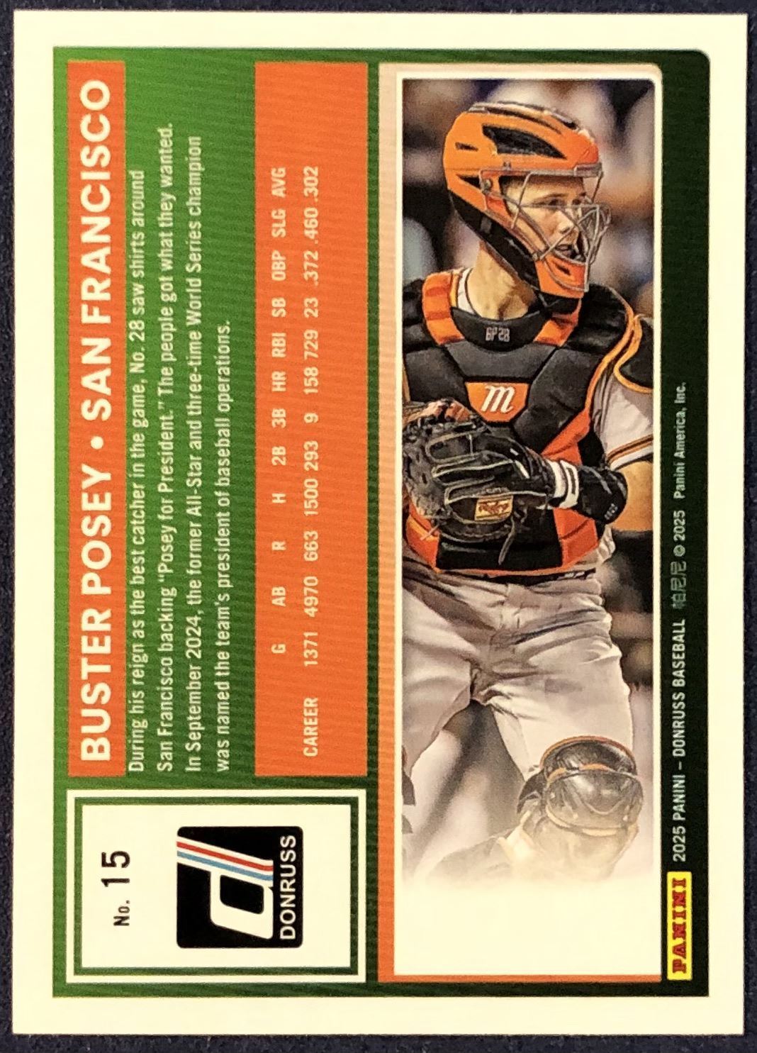 Lot 350 2025 DONRUSS YELLOW PARALLEL BUSTER POSEY