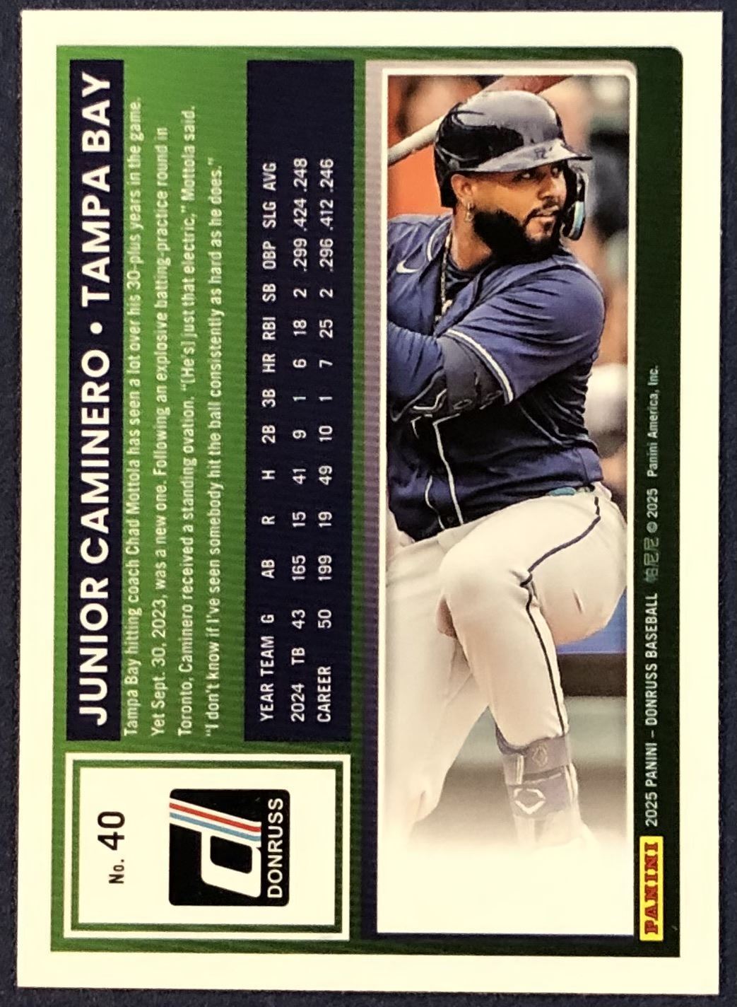 Lot 352 2025 DONRUSS YELLOW PARALLEL JUNIOR CAMINERO ROOKIE CARD