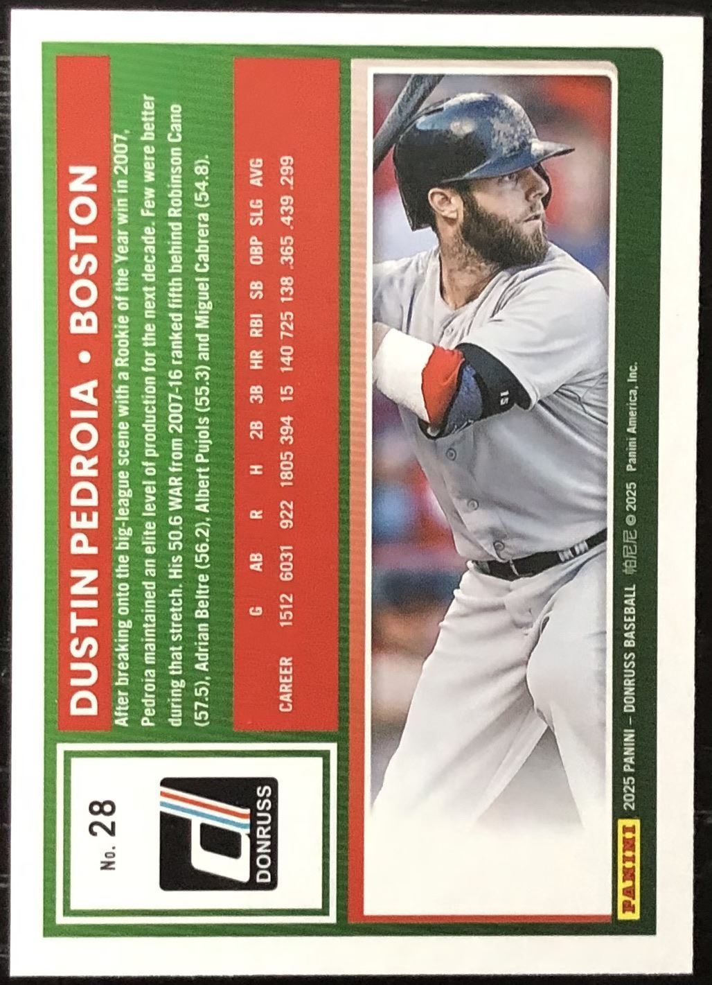 Lot 357 2025 DONRUSS YELLOW PARALLEL DUSTIN PEDROIA (HOF)