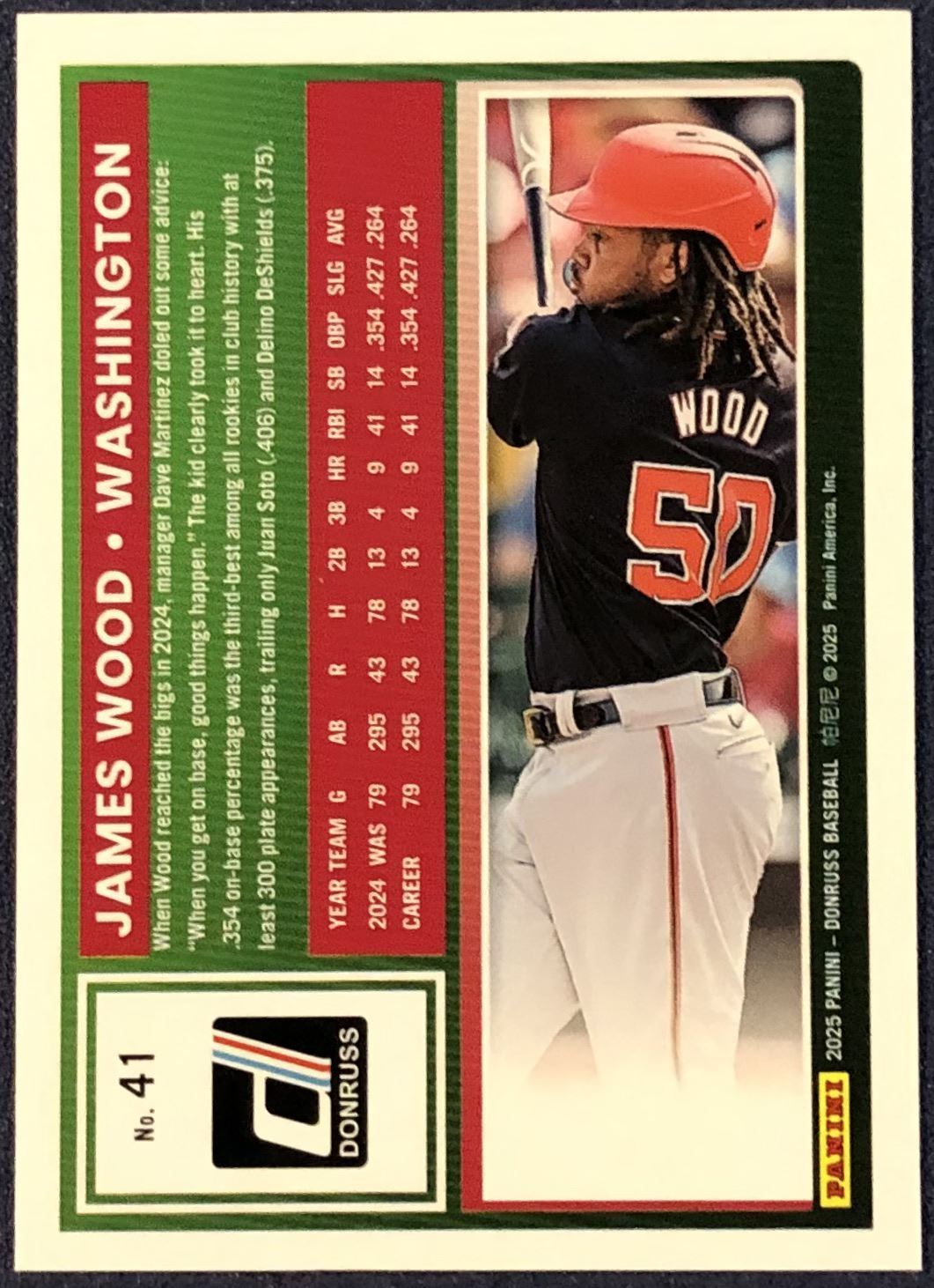 Lot 360 2025 DONRUSS YELLOW PARALLEL JAMES WOOD ROOKIE CARD