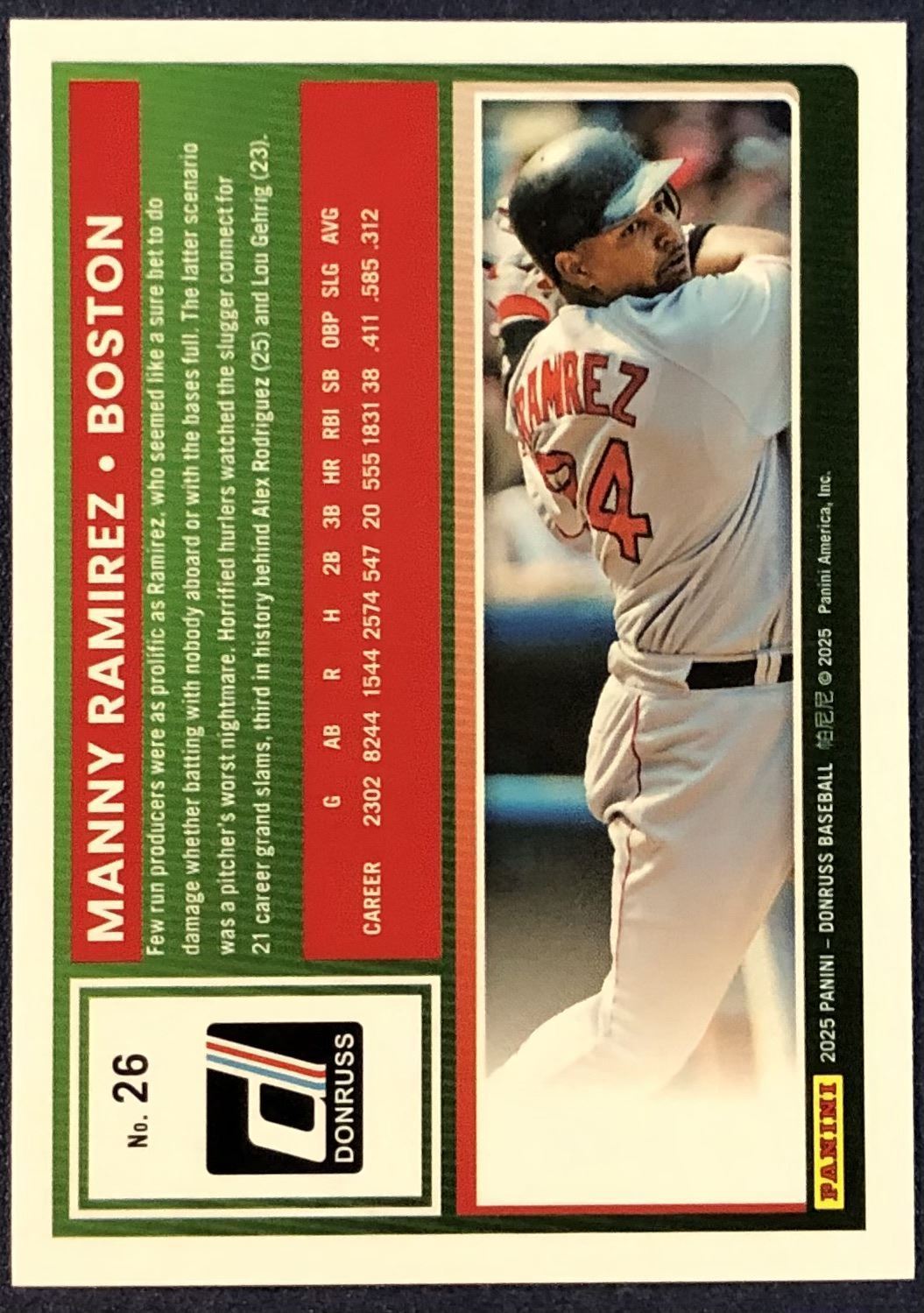 Lot 365 2025 DONRUSS YELLOW PARALLEL MANNY RAMIREZ (HOF)