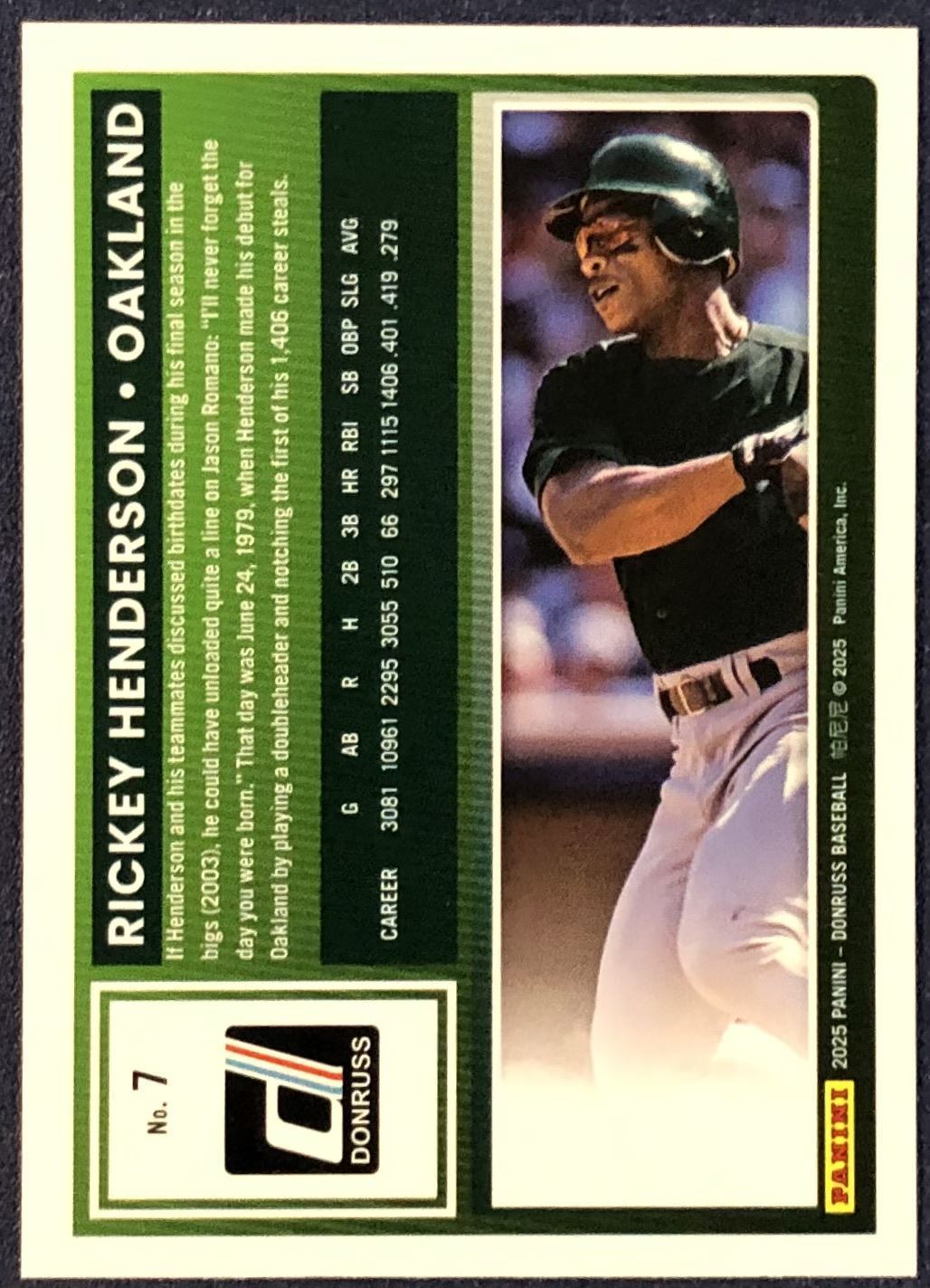 Lot 368 2025 DONRUSS YELLOW PARALLEL RICKEY HENDERSON (HOF)