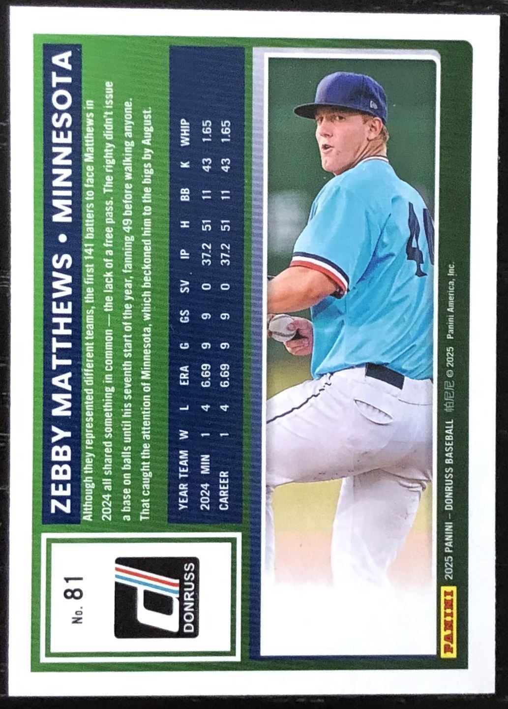 Lot 372 2025 DONRUSS ZEBBY MATTHEWS ROOKIE CARD