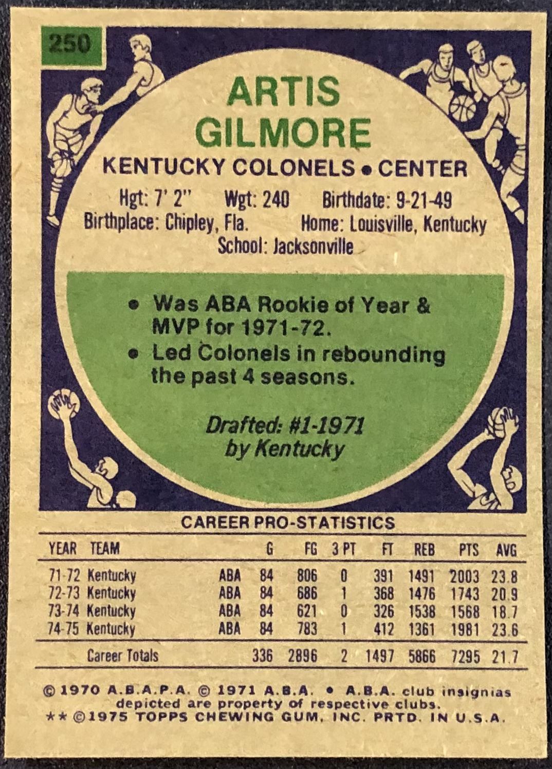 Lot 374 1975-76 TOPPS ARTIS GILMORE (HOF)