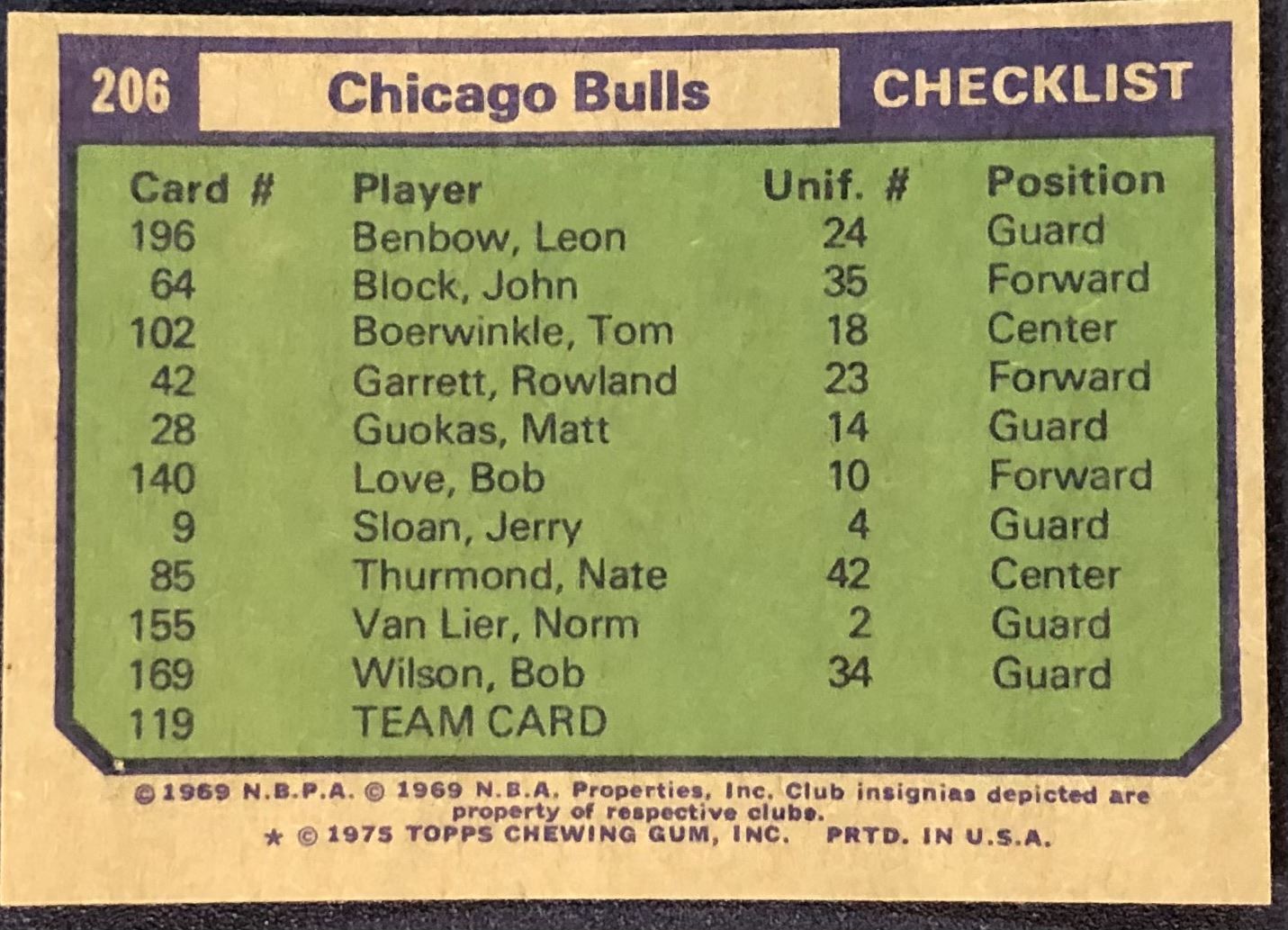 Lot 376 1975-76 TOPPS CHICAGO BULLS