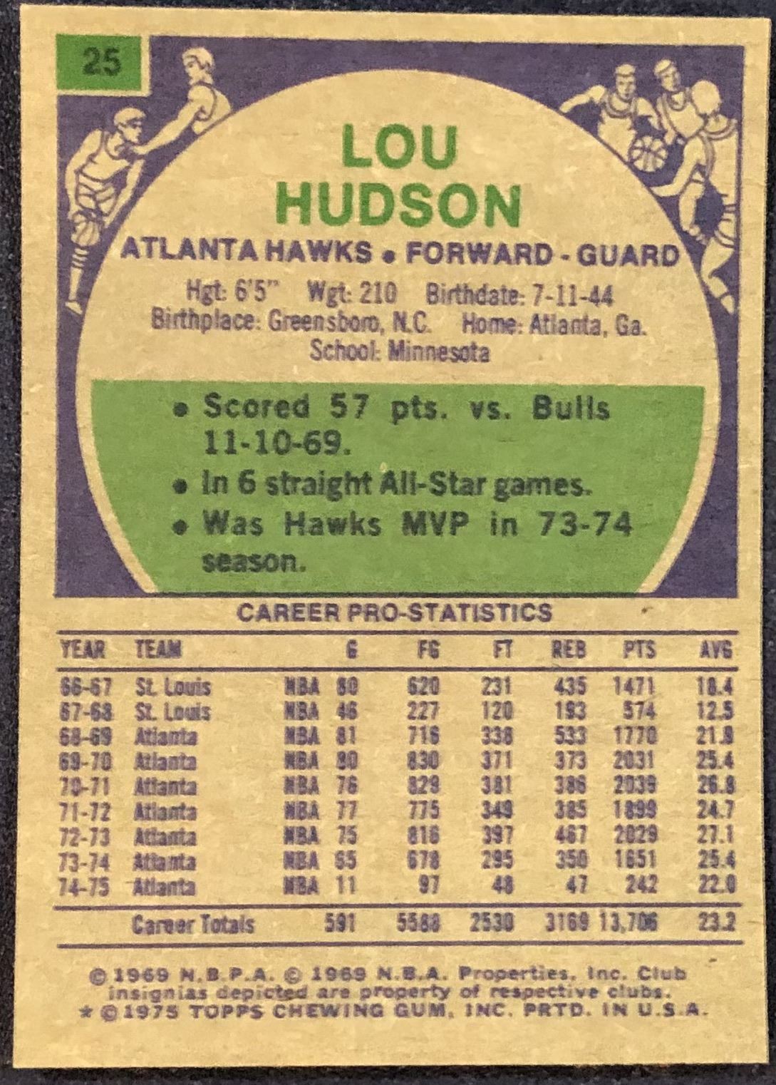 Lot 380 1975-76 TOPPS LOU HUDSON (HOF)