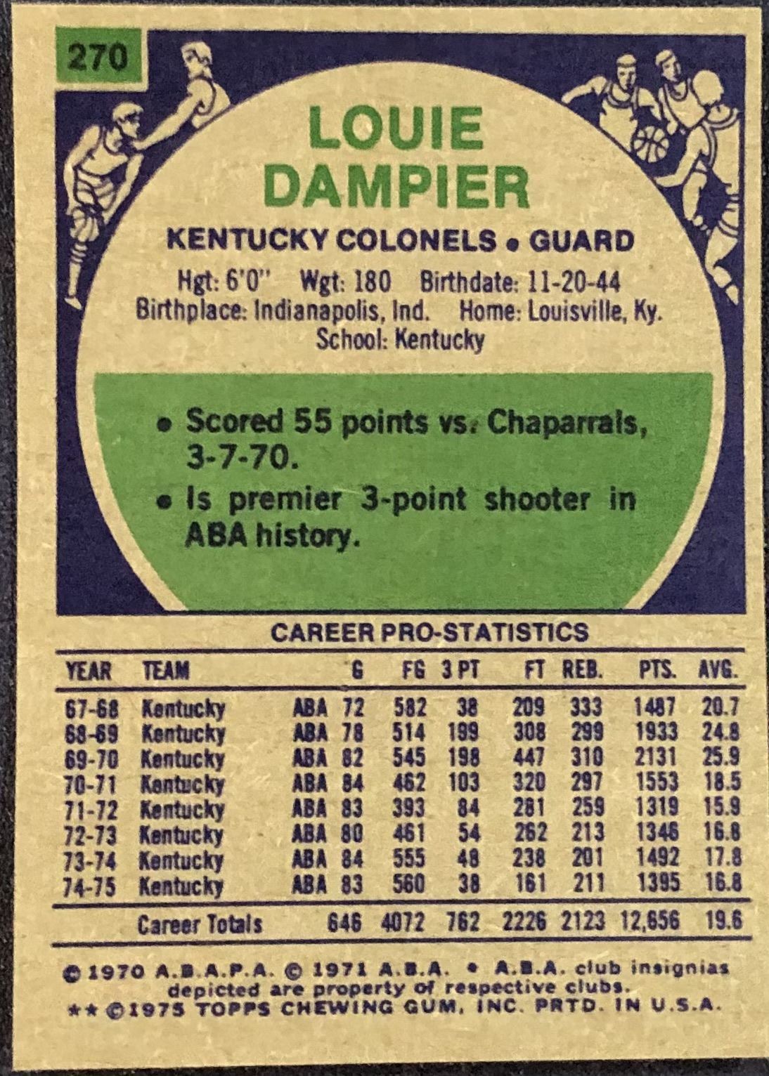 Lot 381 1975-76 TOPPS LOUIE DAMPIER (HOF)