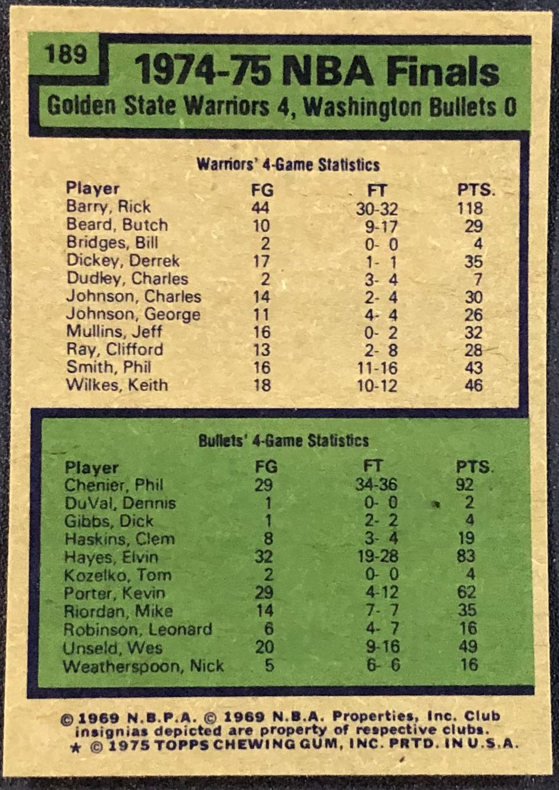 Lot 382 1975-76 TOPPS NBA FINALS