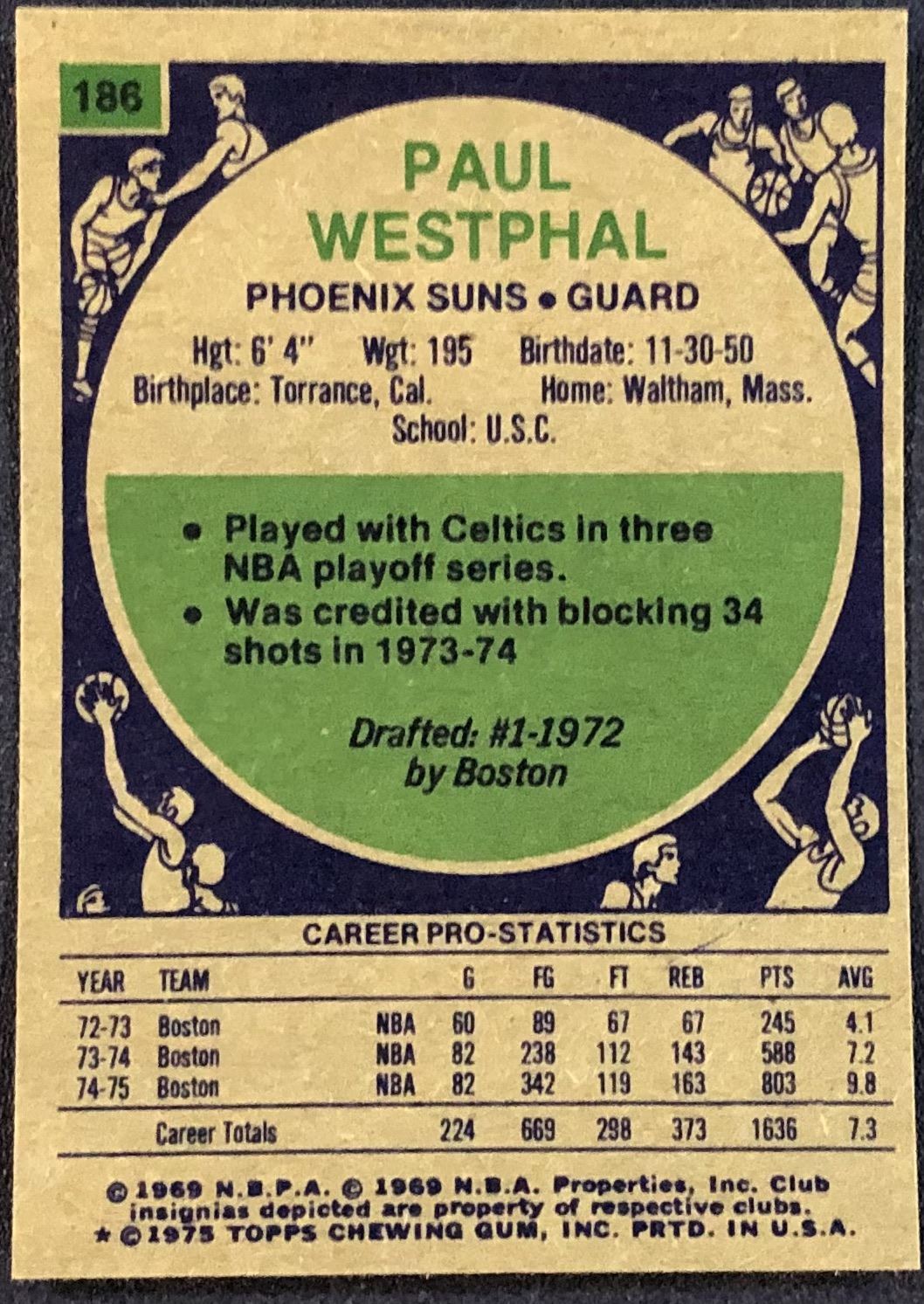 Lot 383 1975-76 TOPPS PAUL WESTPHAL (HOF)