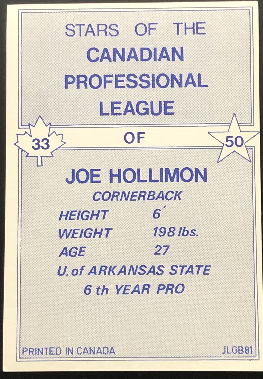 Lot 405 1981 JOGO CFL JOE HOLLIMON (HOF)