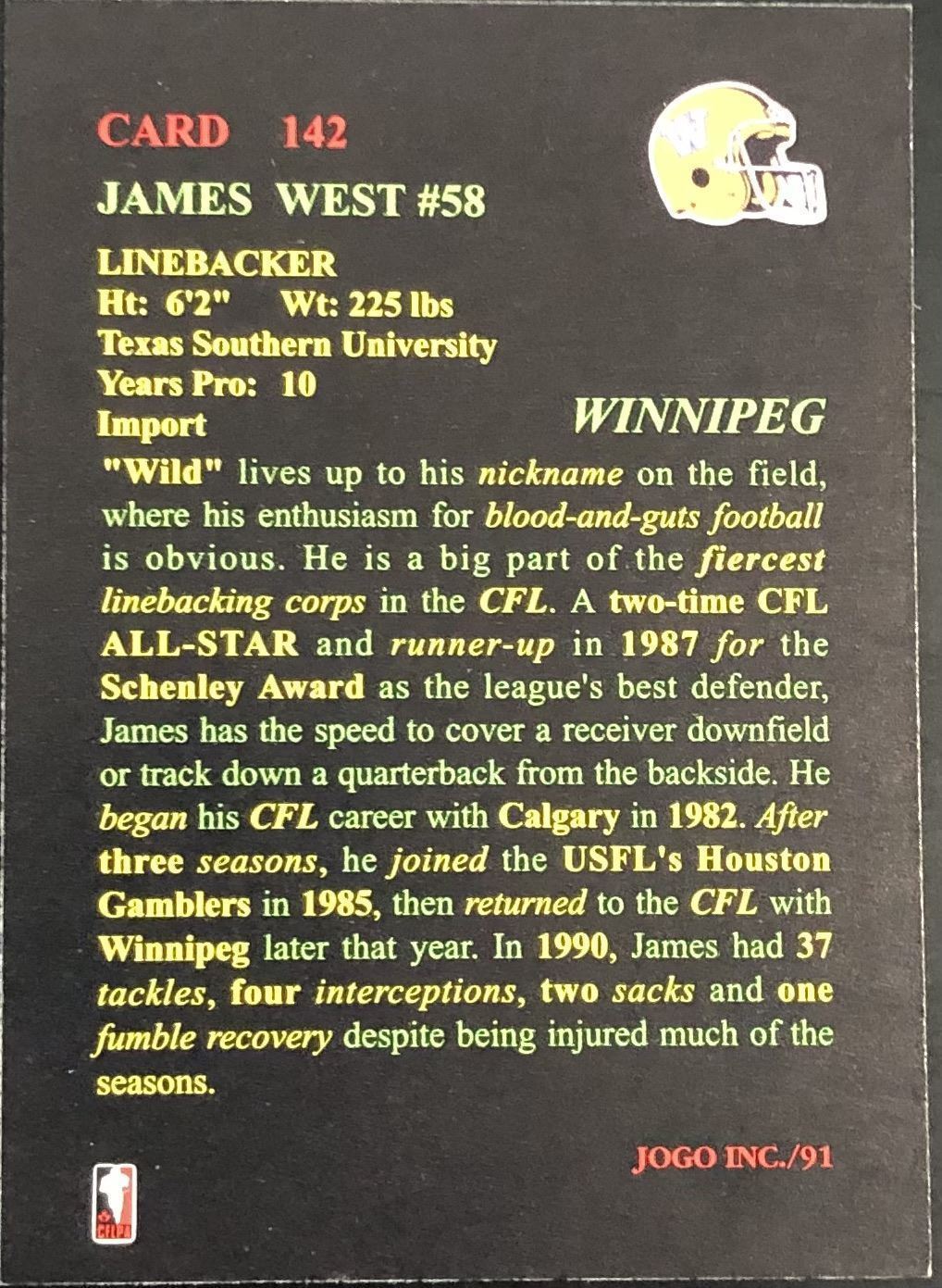 Lot 413 1991 JOGO CFL JAMES WEST (HOF)