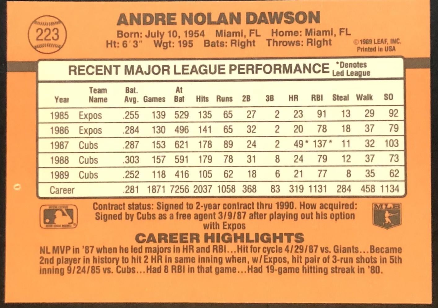 Lot 415 1990 DONRUSS ANDRE DAWSON (HOF)