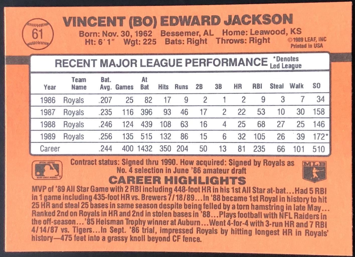 Lot 416 1990 DONRUSS BO JACKSON