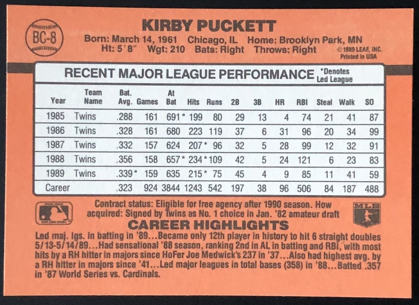 Lot 422 1990 DONRUSS KIRBY PUCKETT (HOF)
