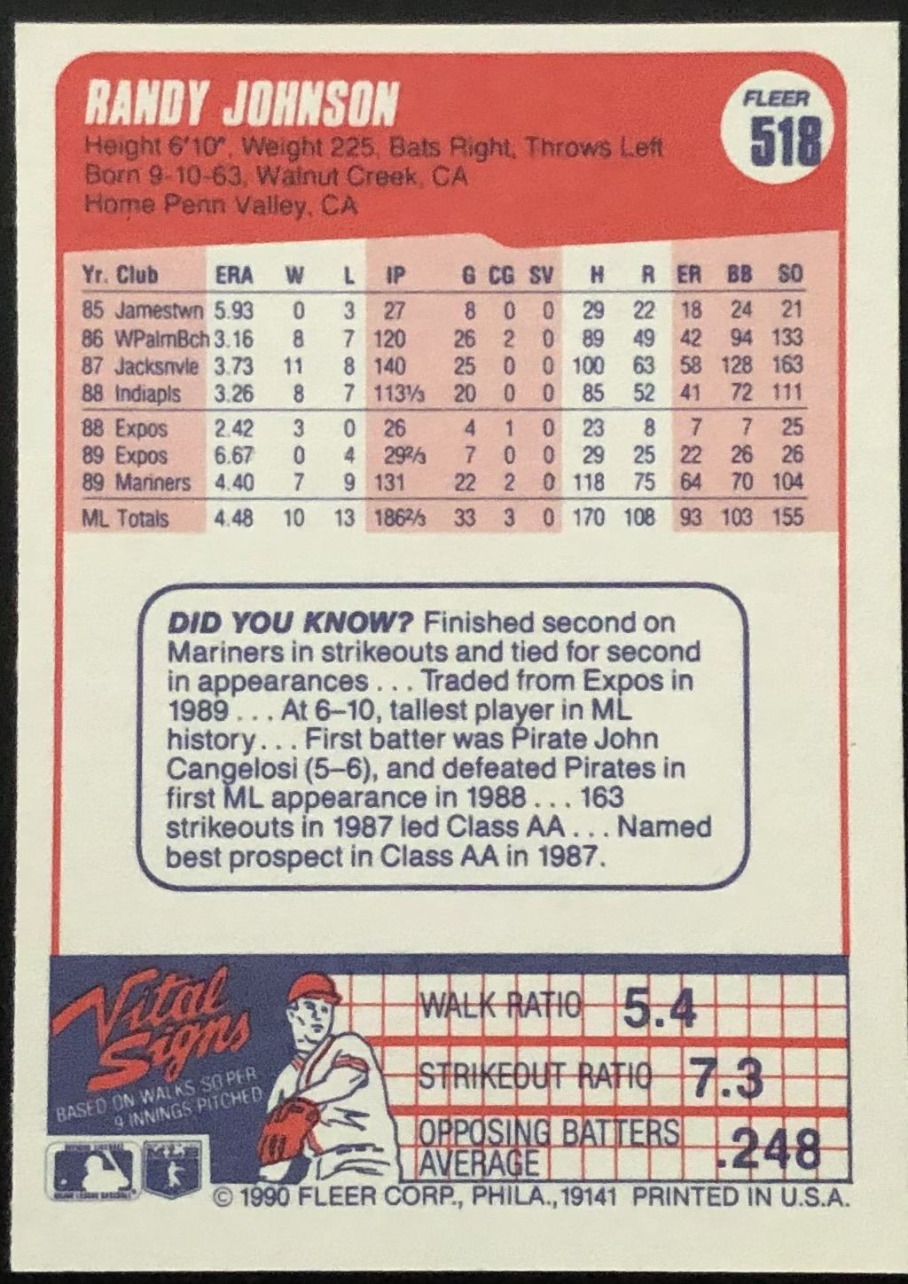 Lot 426 1990 FLEER RANDY JOHNSON (HOF)