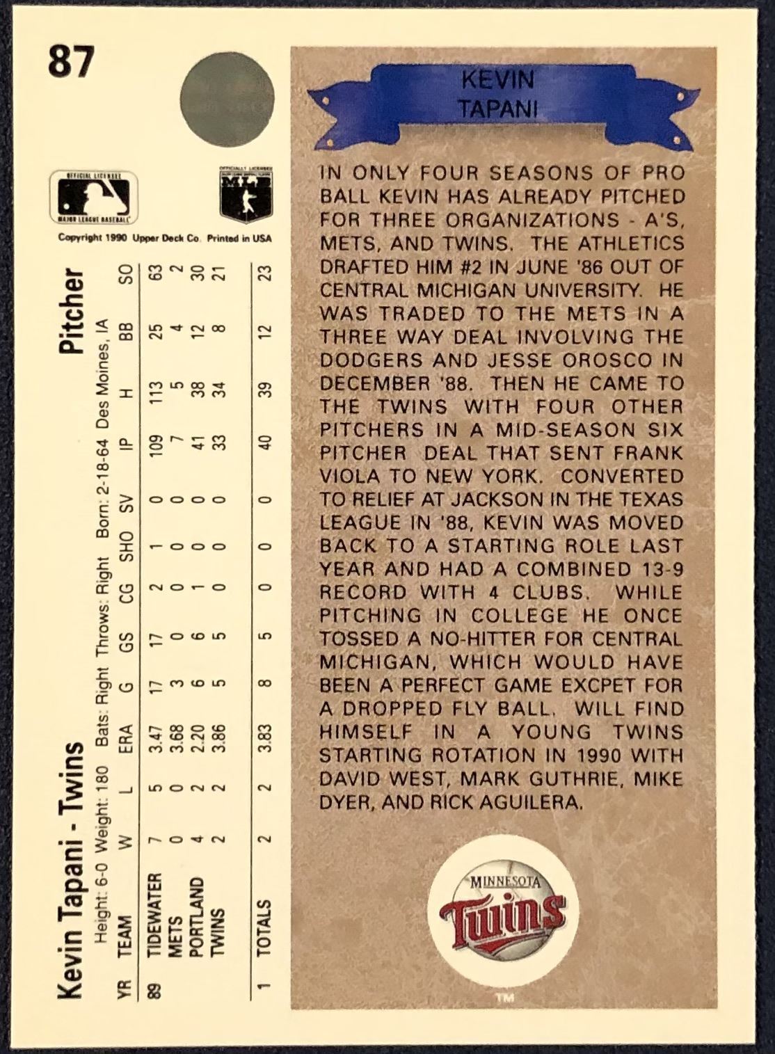 Lot 439 1990 UPPER DECK KEVIN TAPANI ROOKIE CARD