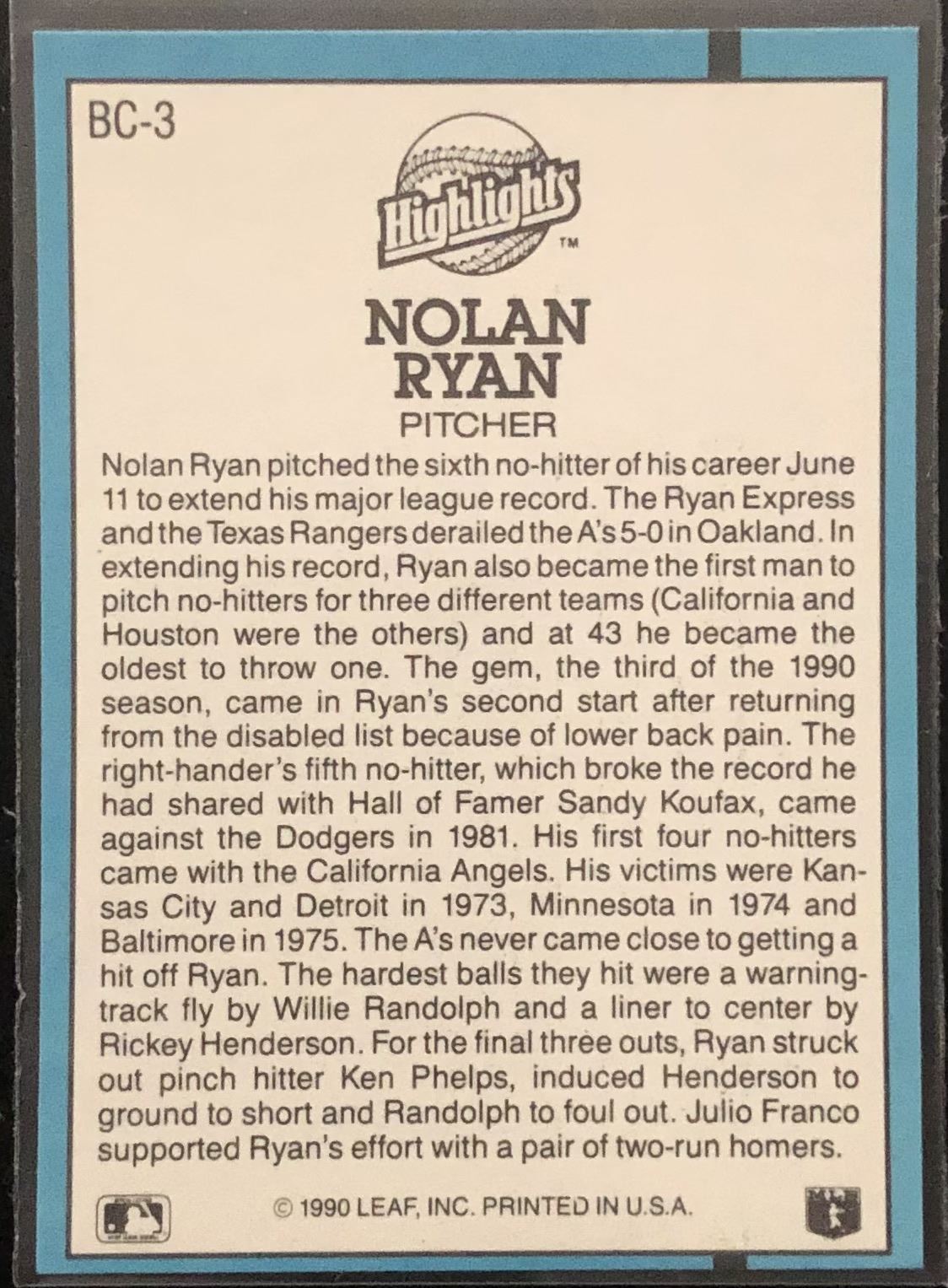 Lot 449 1991 DONRUSS NOLAN RYAN (HOF)
