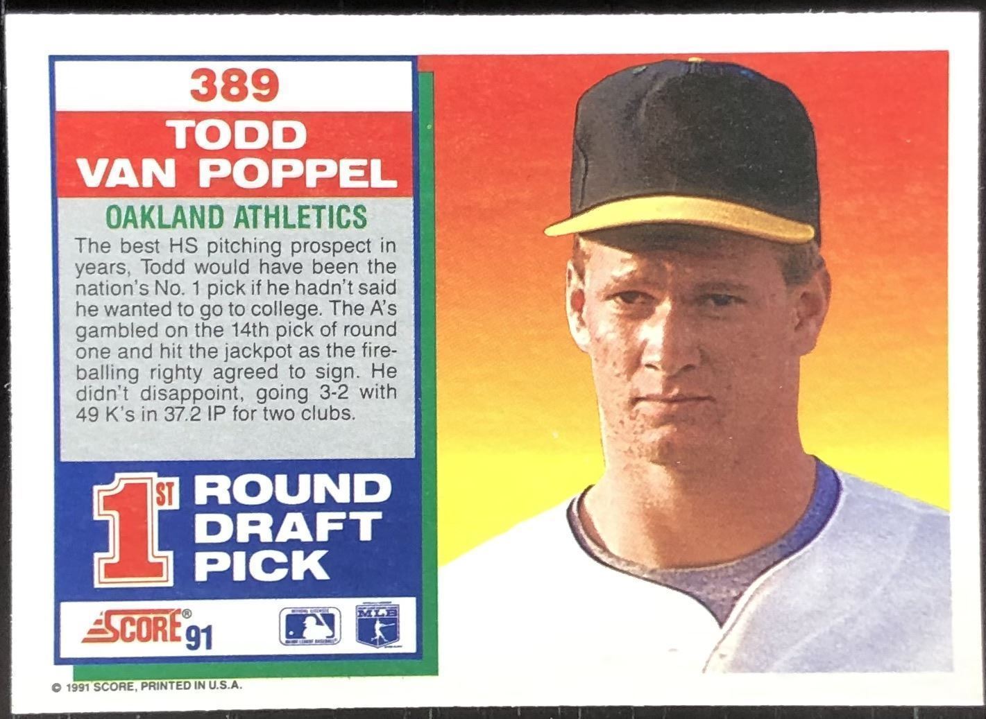 Lot 454 1991 SCORE TODD VAN POPPEL ROOKIE CARD