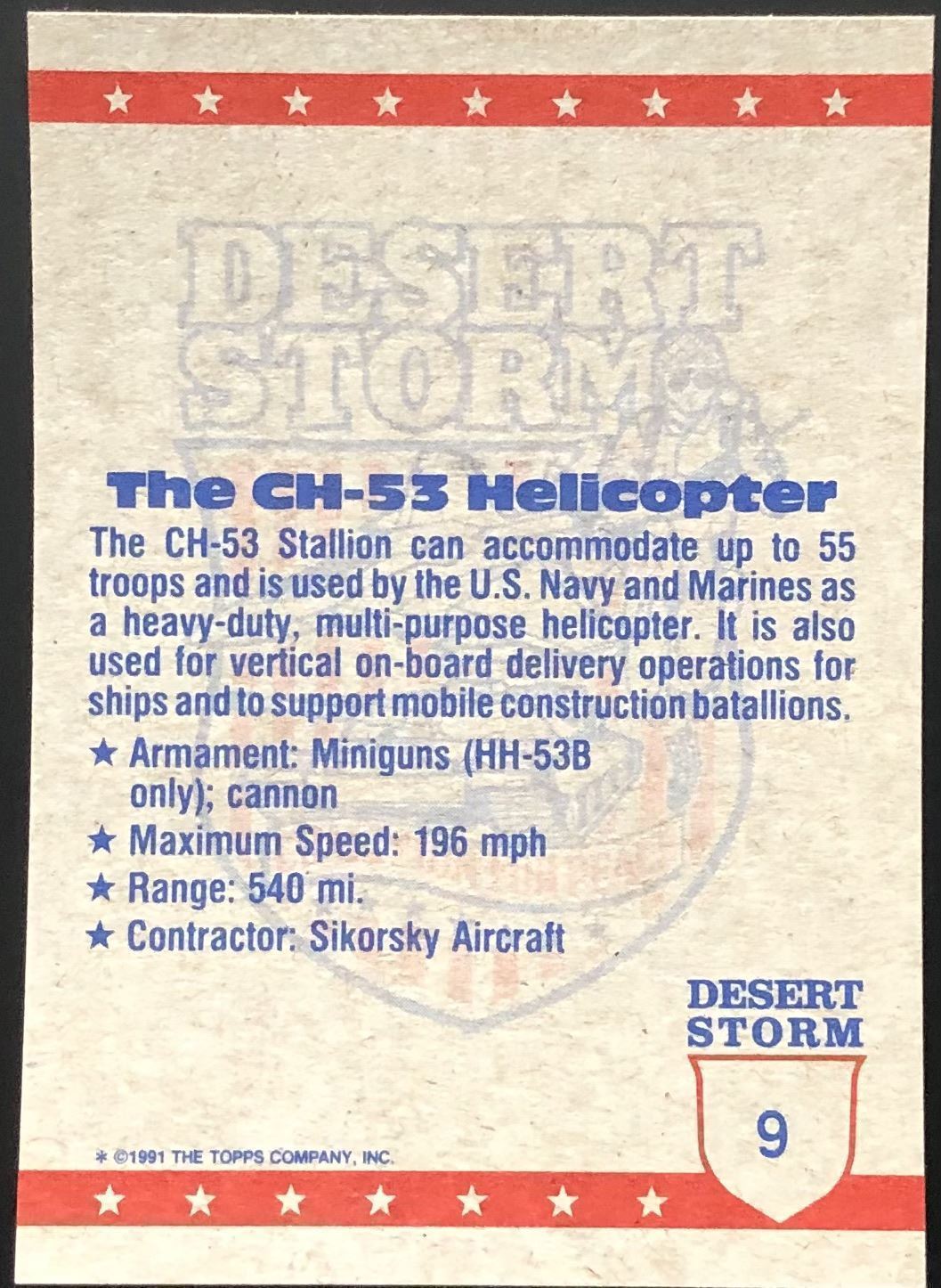 Lot 457 1991 TOPPS DESERT STORM CH-53 HELICOPTER
