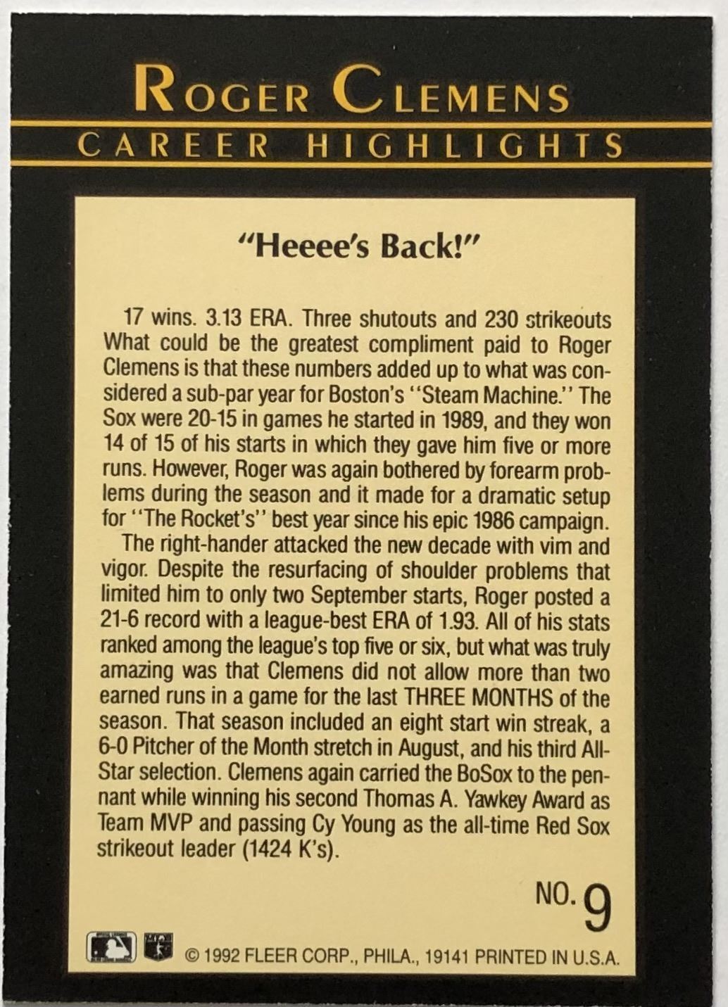 Lot 462 1992 FLEER ROGER CLEMENS