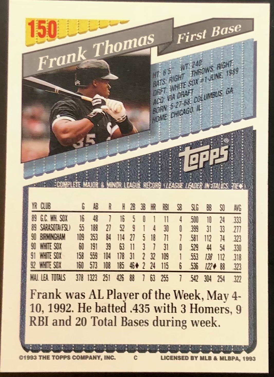 Lot 468 1993 TOPPS FRANK THOMAS (HOF)