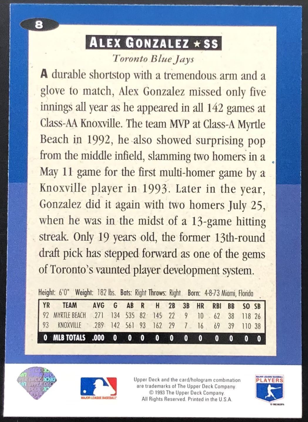 Lot 474 1994 UPPER DECK ALEX GONZALEZ ROOKIE CARD