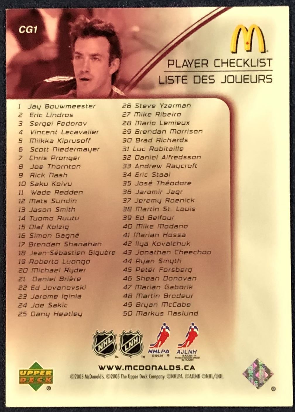 McDonald's card #CG1 NHL, hockey, regional, UD, hall of fame