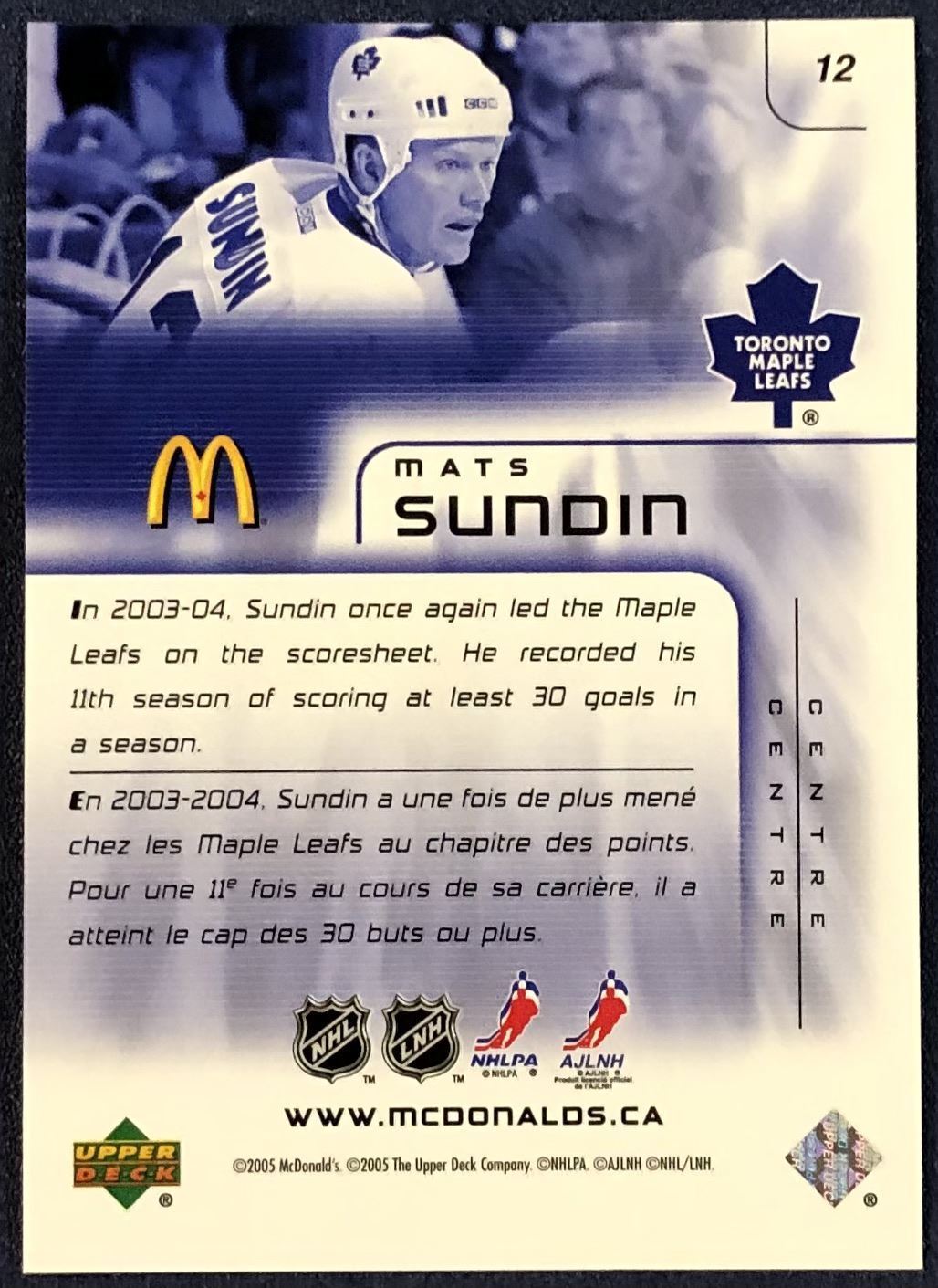 Lot 498 2005-06 UPPER DECK MATS SUNDIN (HOF)
