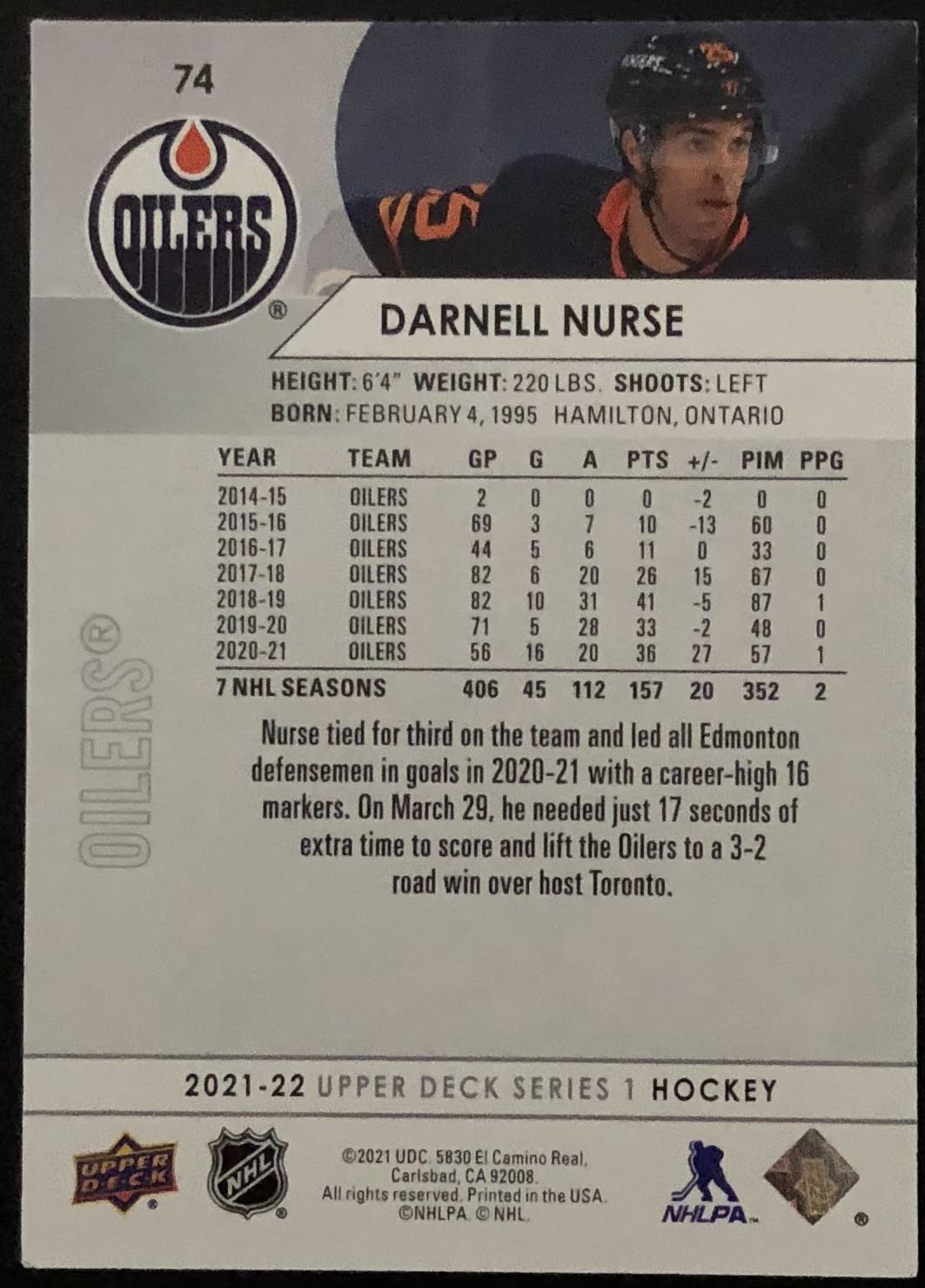 Lot 503 2021-22 UPPER DECK DARNELL NURSE