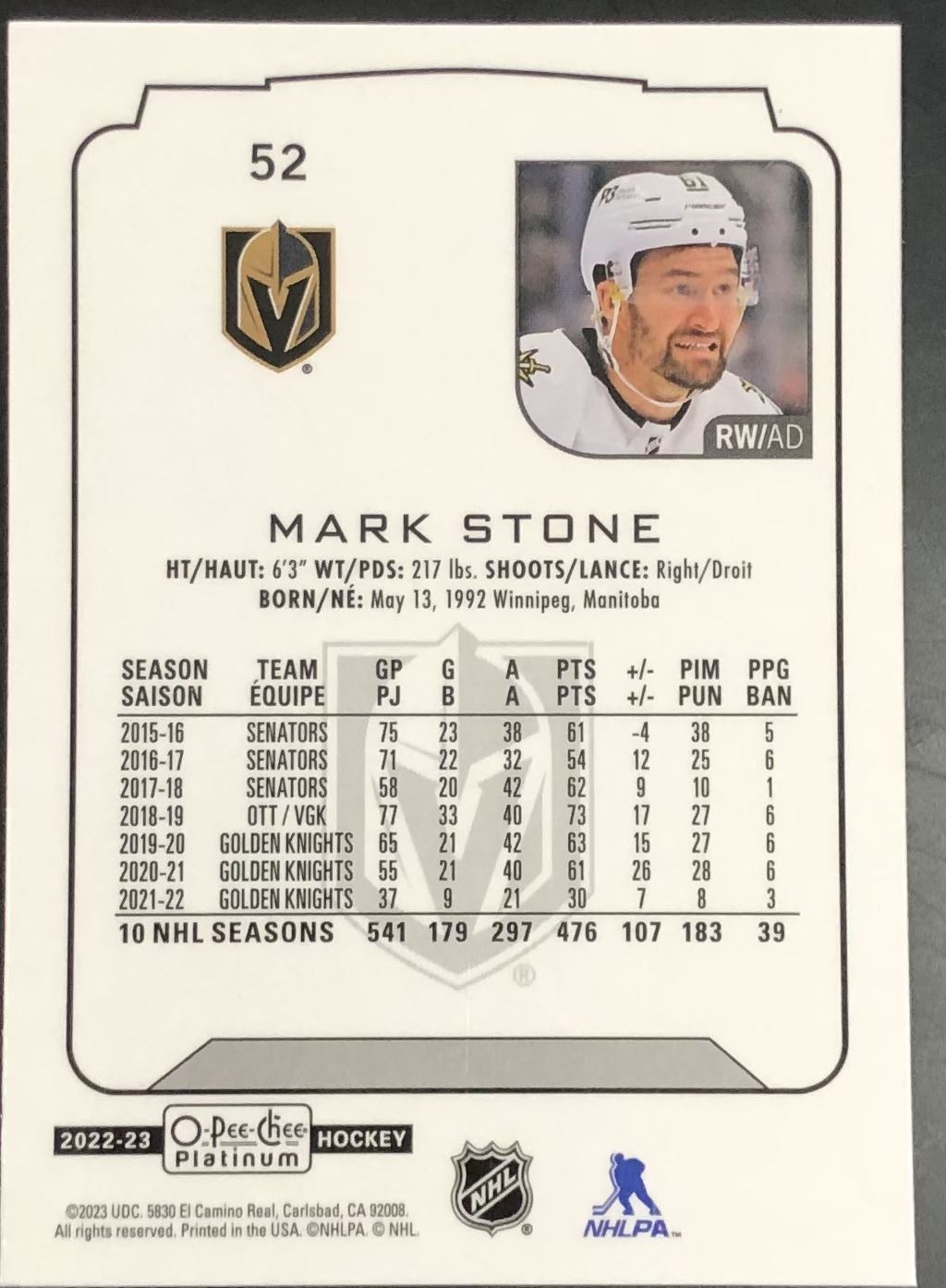 Lot 507 2022-23 O-PEE-CHEE PLATINUM MARK STONE