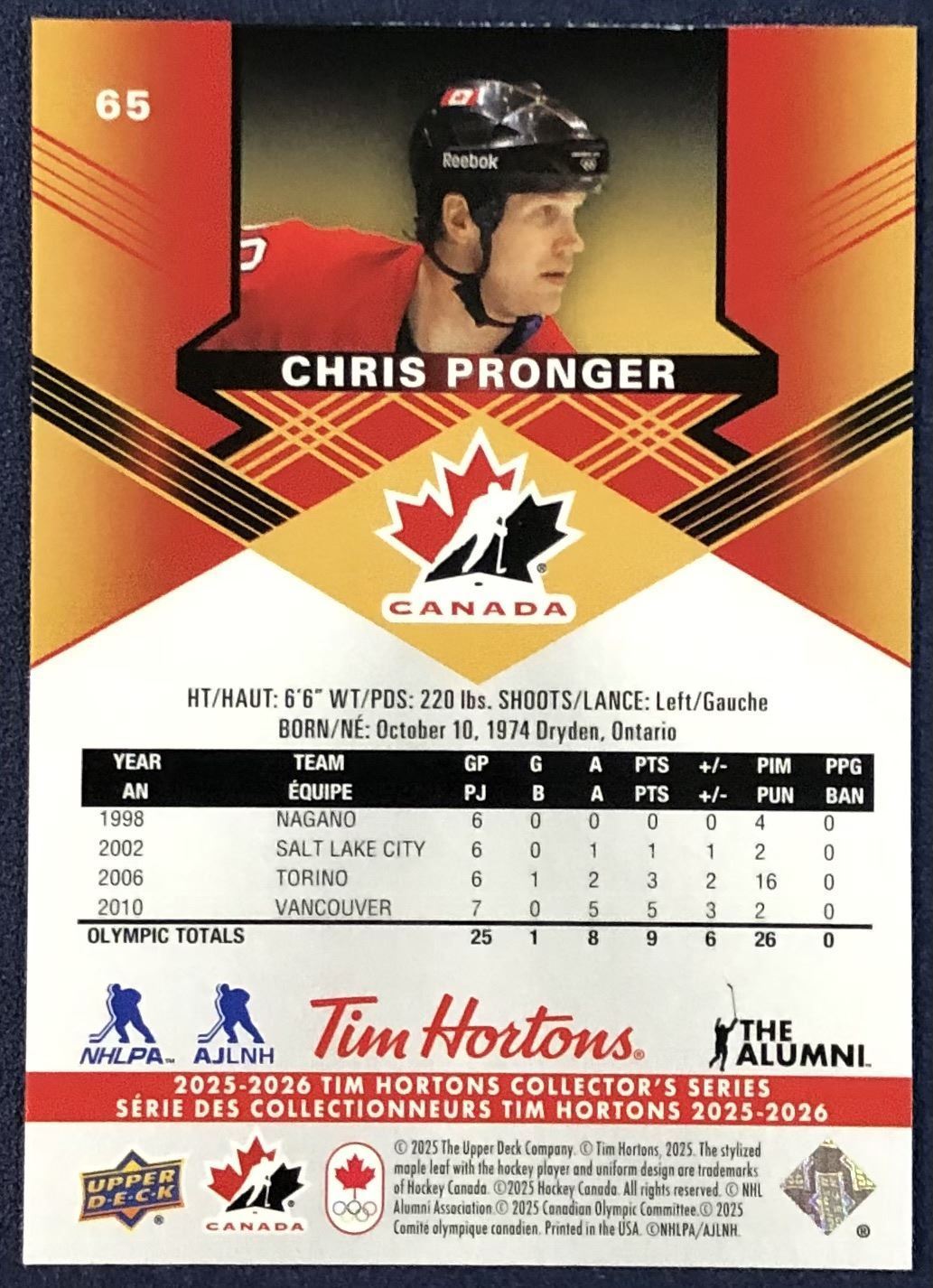 Lot 518 2025-26 UPPER DECK CHRIS PRONGER (HOF)
