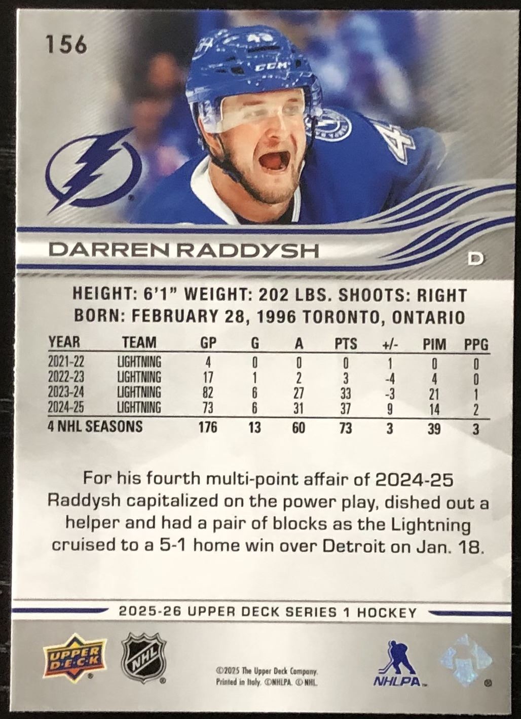 Lot 519 2025-26 UPPER DECK DARREN RADDYSH