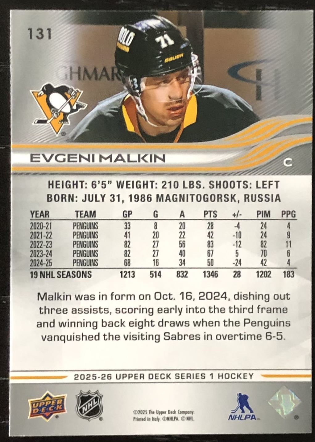 Lot 524 2025-26 UPPER DECK EVGENI MALKIN