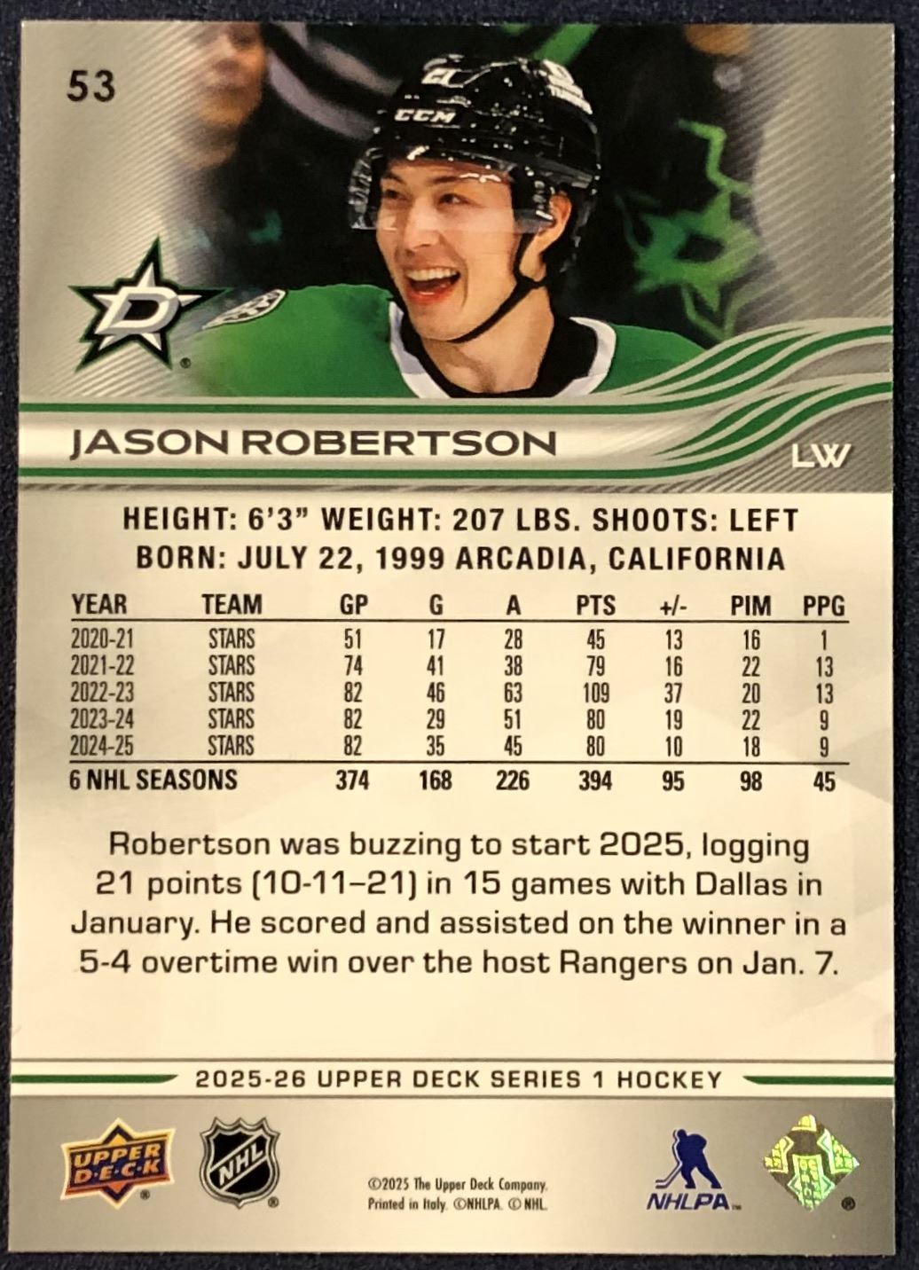 Lot 533 2025-26 UPPER DECK JASON ROBERTSON
