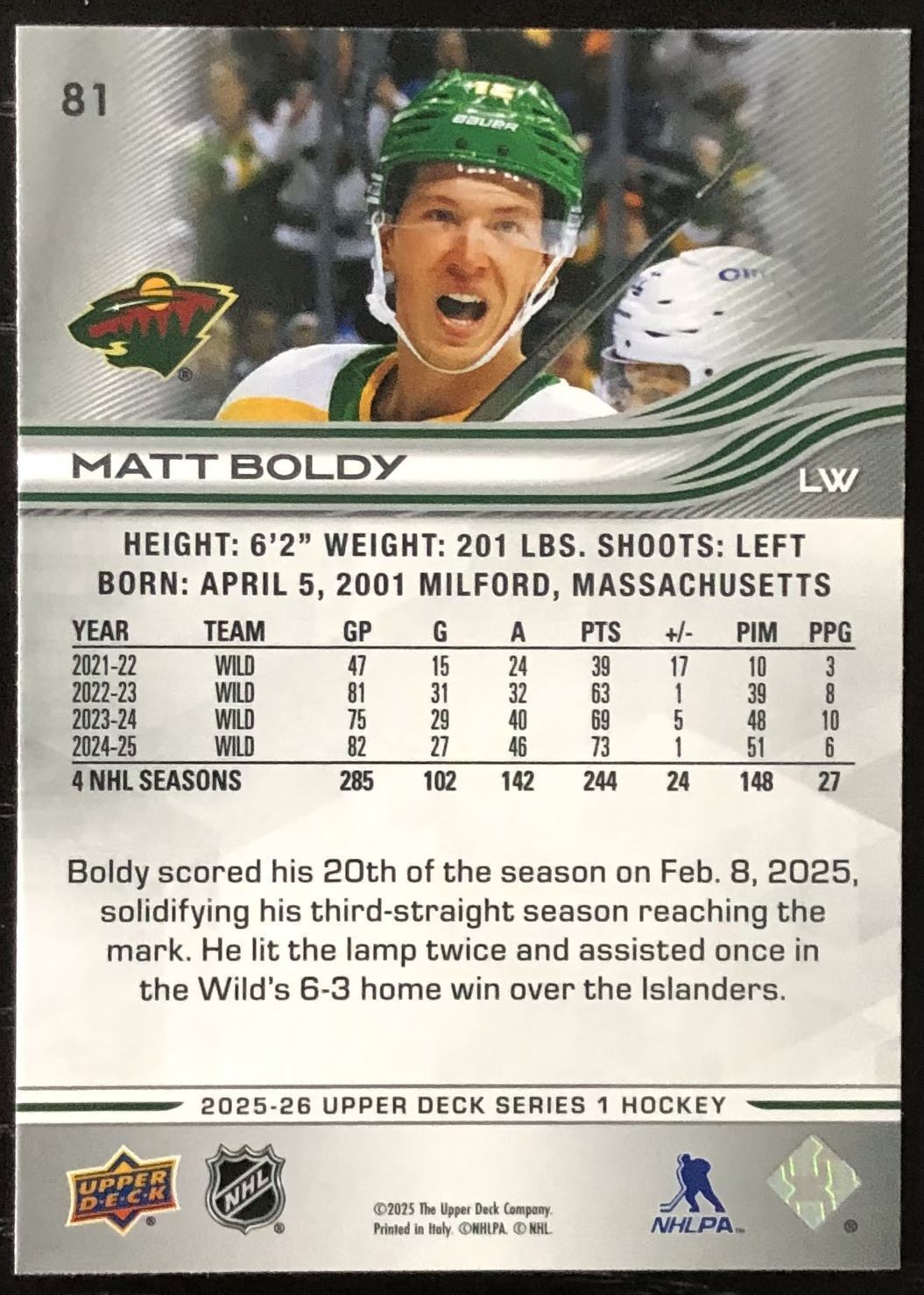 Lot 540 2025-26 UPPER DECK MATT BOLDY