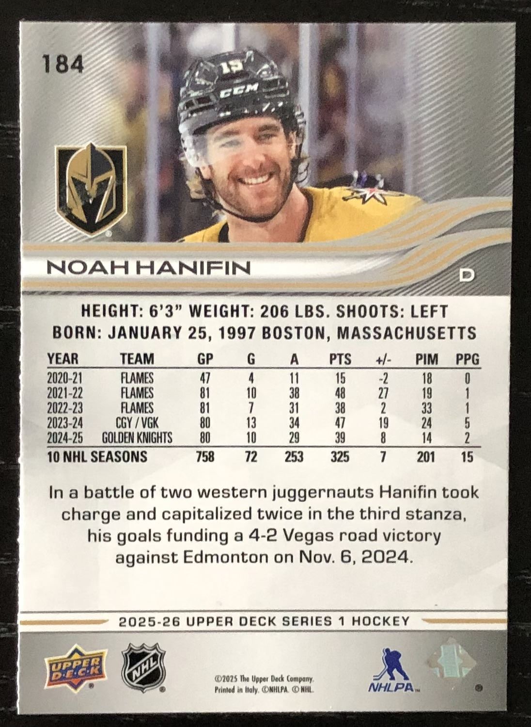 Lot 553 2025-26 UPPER DECK NOAH HANIFIN