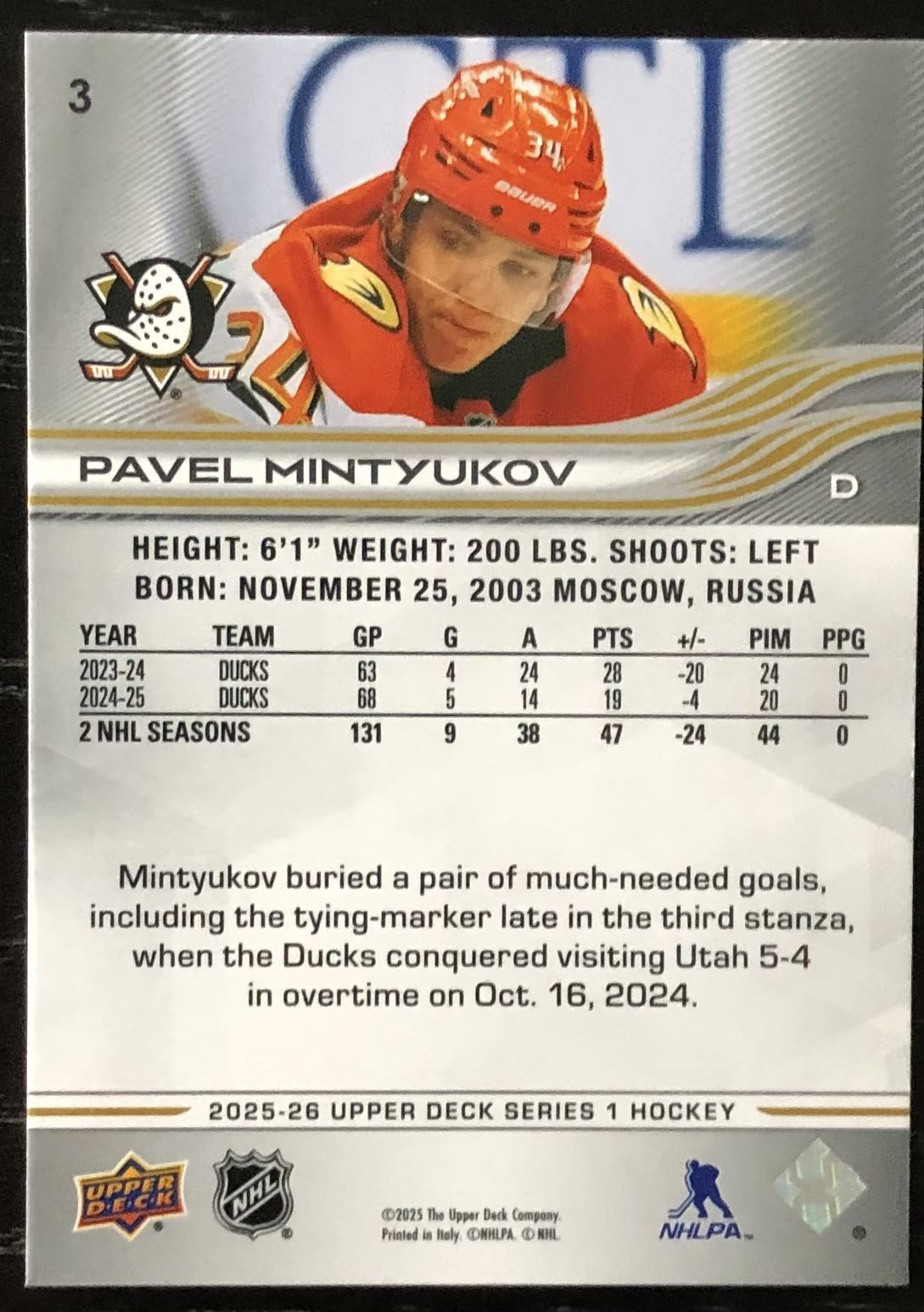 Lot 556 2025-26 UPPER DECK PAVEL MINTYUKOV