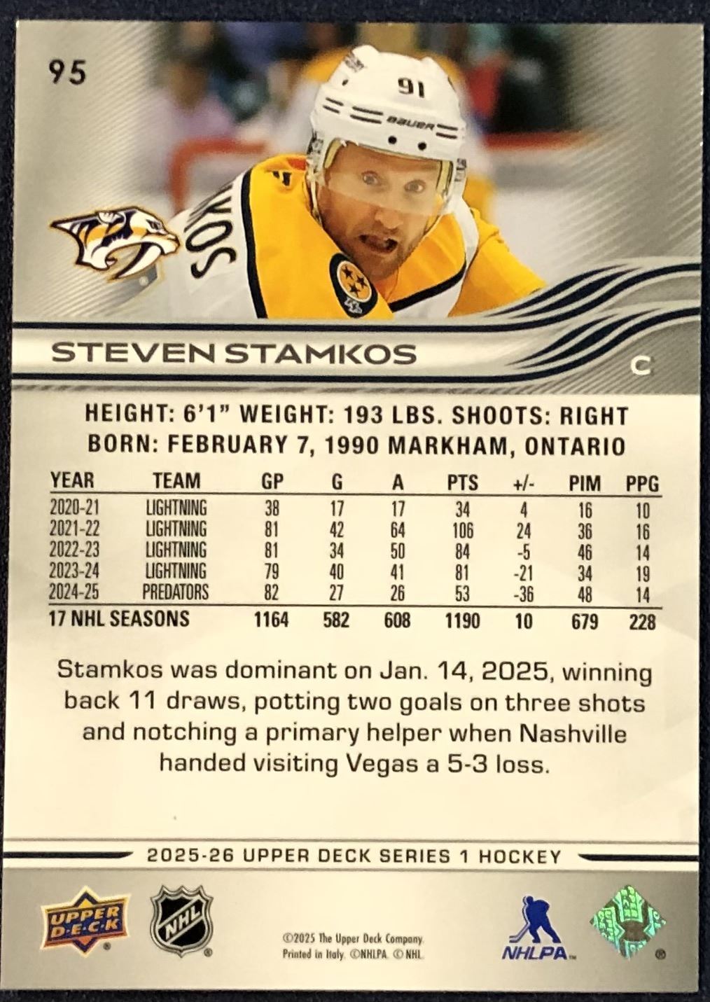 Lot 562 2025-26 UPPER DECK STEVEN STAMKOS