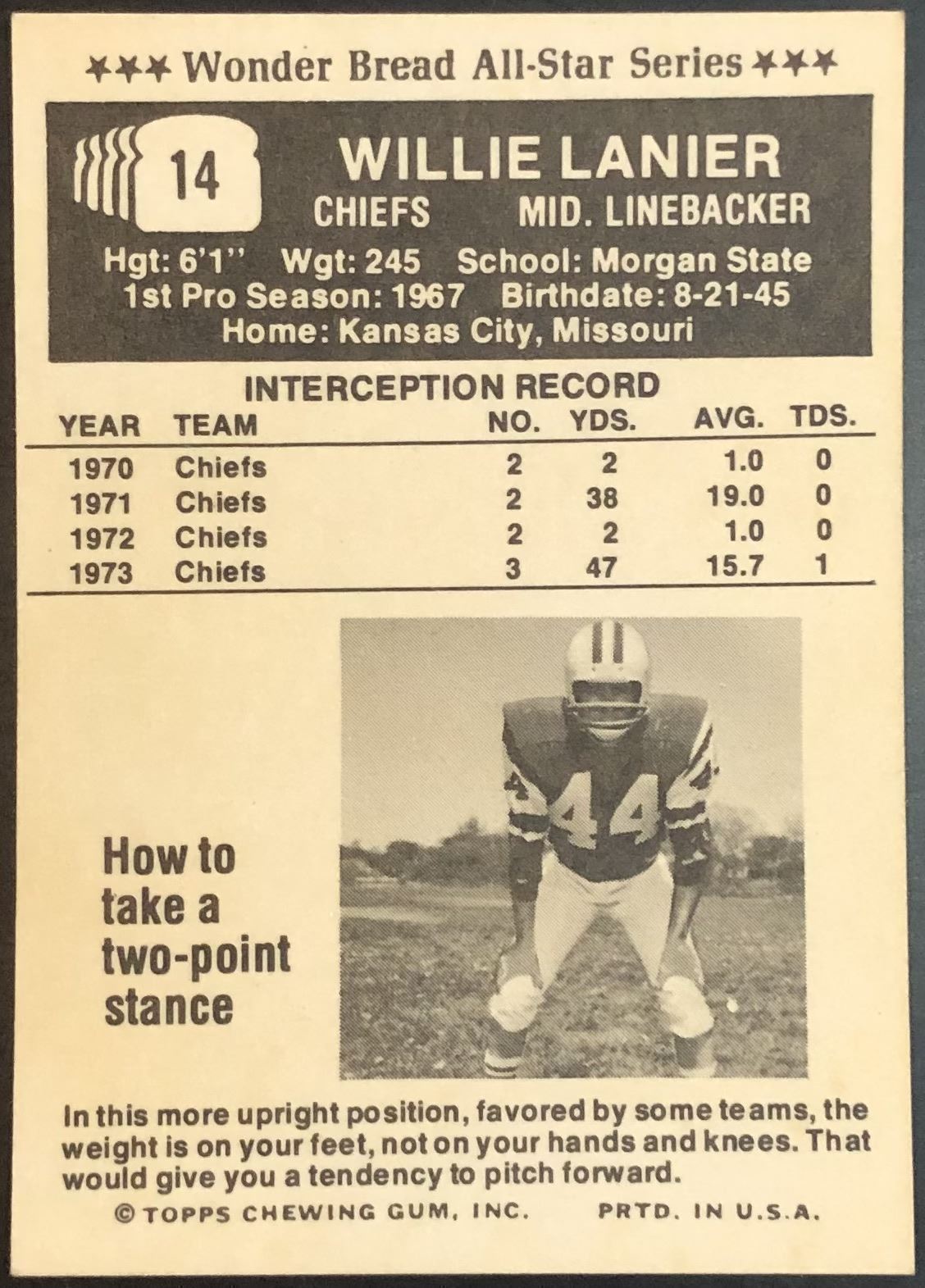 Lot 575 1974 TOPPS WONDER BREAD WILLIE LANIER (HOF)