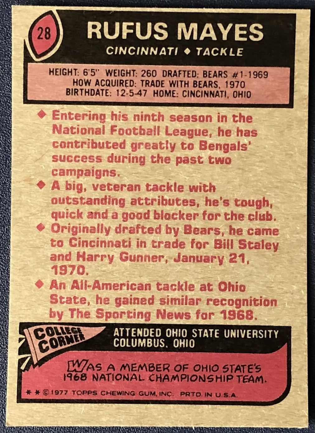 Lot 579 1977 TOPPS RUFUS MAYES (HOF)